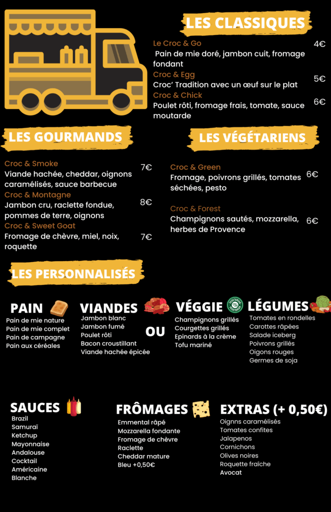Bienvenue sur la page officielle du menu de Croc’ ta pause foodtruck !